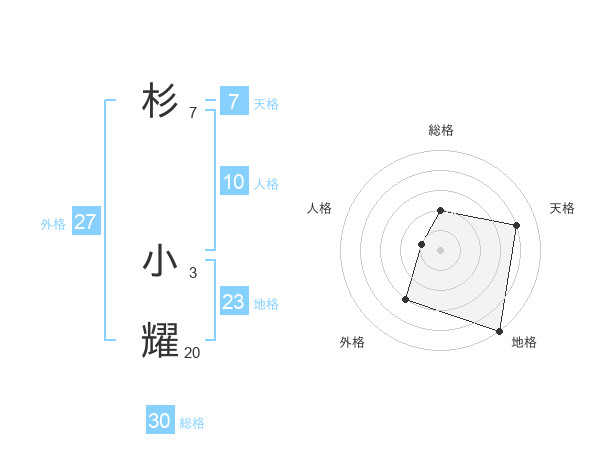 杉 小耀さんの総格は30画の2点!