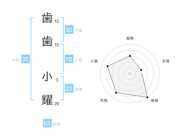 歯歯 小耀さんを姓名の画数から五運を鑑定