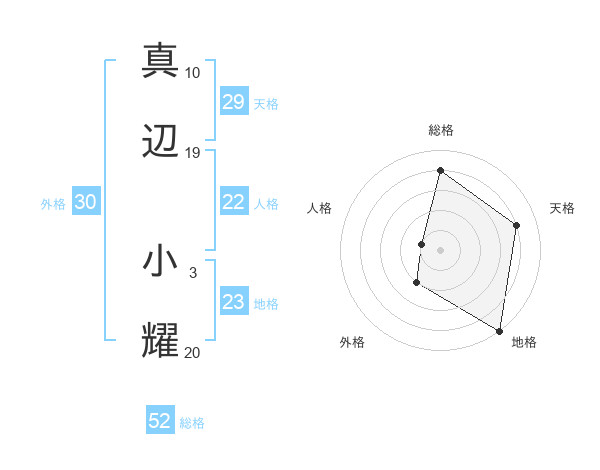 真辺 小耀さんの総格は52画の4点!