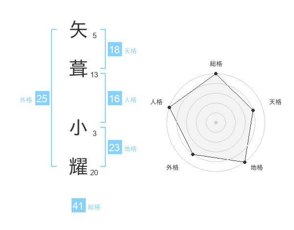 矢葺 小耀さんの外格は25画の4点!
