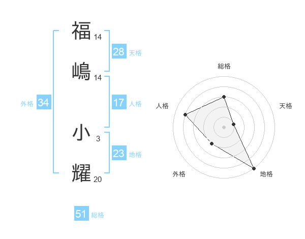 福嶋 小耀さんの総格は51画の3点!