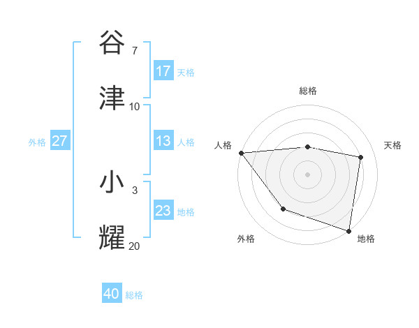 谷津 小耀さんの天格は17画の4点!