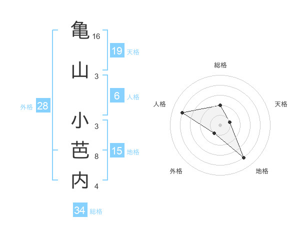 亀山 小芭内さんを姓名の画数から五運を鑑定