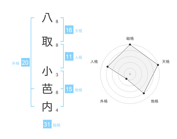 八取 小芭内さんを姓名の画数から五運を鑑定