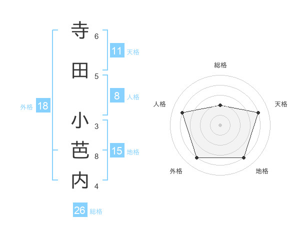 寺田 小芭内さんを姓名の画数から五運を鑑定
