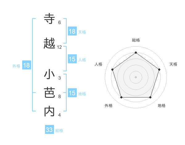 寺越 小芭内さんの総格は33画の4点!