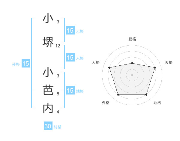 小堺 小芭内さんの外格は15画の4点!