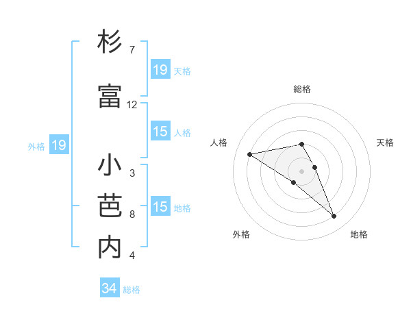 杉富 小芭内さんの地格は15画の4点!