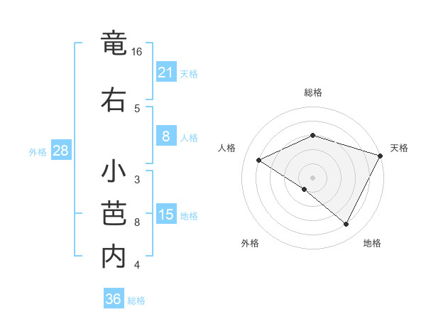 竜右 小芭内さんを姓名の画数から五運を鑑定