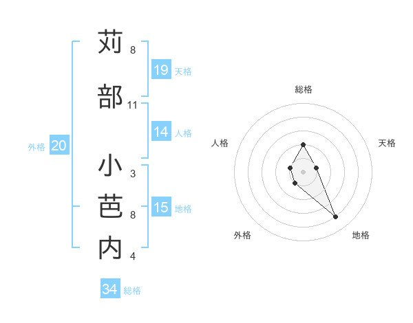 苅部 小芭内さんを姓名の画数から五運を鑑定