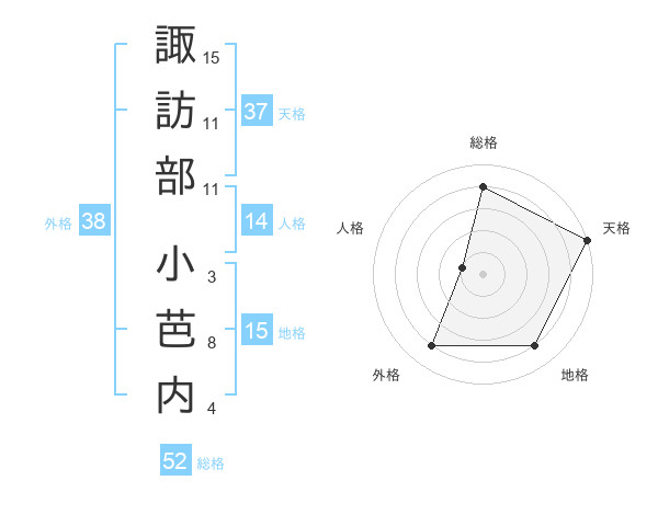 諏訪部 小芭内さんの総格は52画の4点!