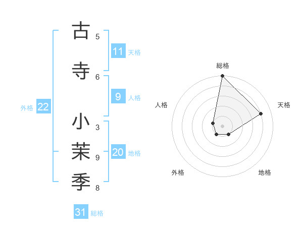 古寺 小茉季さんの総格は31画の5点!