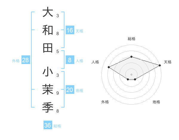 大和田 小茉季さんを姓名の画数から五運を鑑定