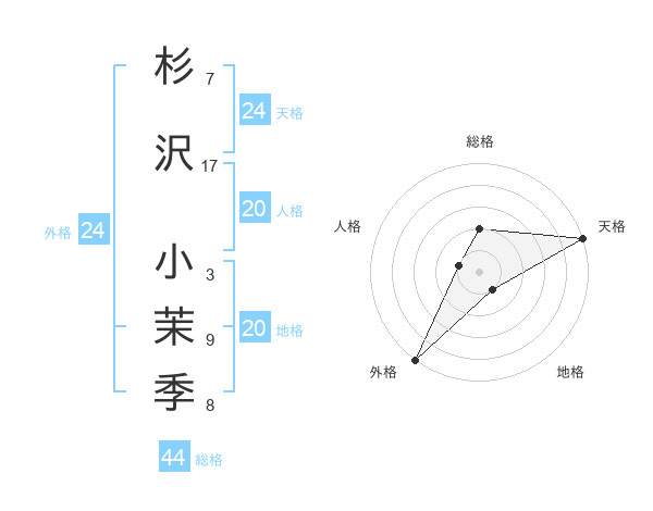 杉沢 小茉季さんを姓名の画数から五運を鑑定