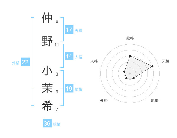 仲野 小茉希さんを姓名の画数から五運を鑑定
