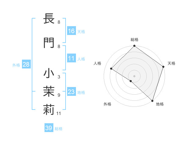 長門 小茉莉さんの総格は39画の5点