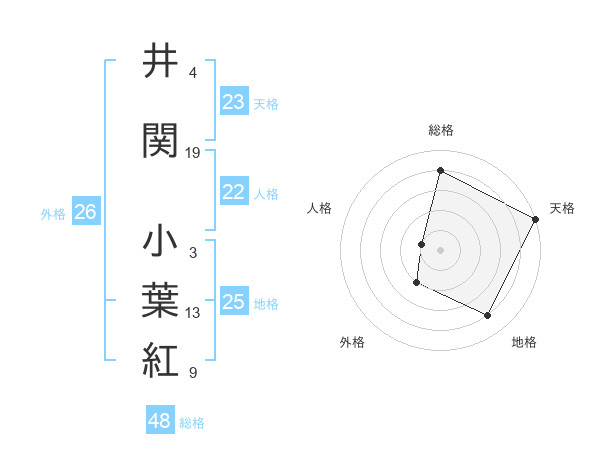 井関 小葉紅さんを姓名の画数から五運を鑑定