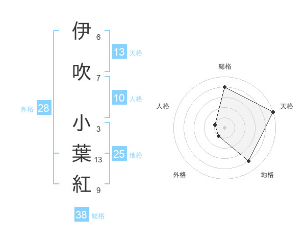 伊吹 小葉紅さんを姓名の画数から五運を鑑定