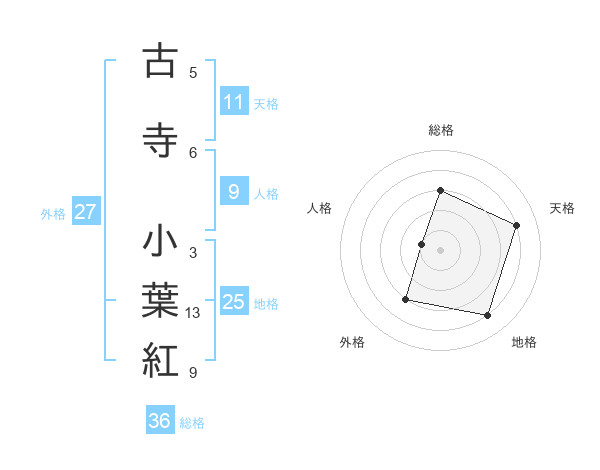 古寺 小葉紅さんを姓名の画数から五運を鑑定
