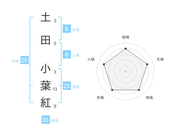 土田 小葉紅さんの総格は33画の4点!