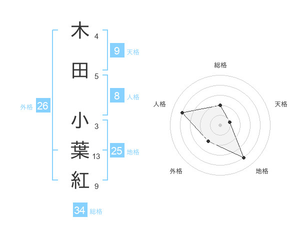 木田 小葉紅さんの総格は34画の2点!