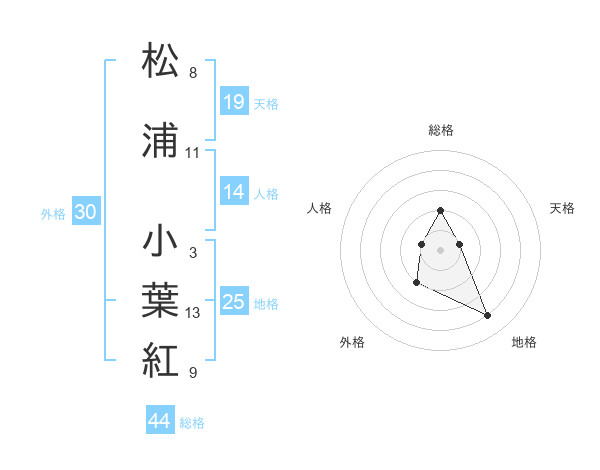 松浦 小葉紅さんを姓名の画数から五運を鑑定