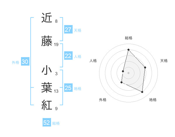 近藤 小葉紅さんを姓名の画数から五運を鑑定