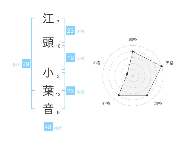 江頭 小葉音さんを姓名の画数から五運を鑑定