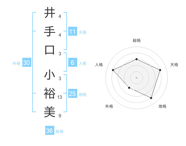 井手口 小裕美さんを姓名の画数から五運を鑑定