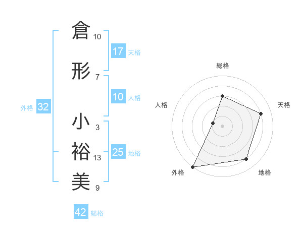 倉形 小裕美さんを姓名の画数から五運を鑑定
