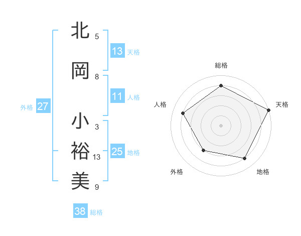 北岡 小裕美さんを姓名の画数から五運を鑑定