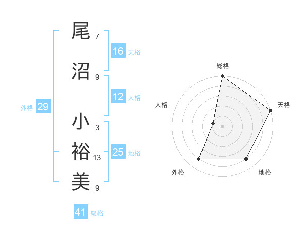 尾沼 小裕美さんを姓名の画数から五運を鑑定