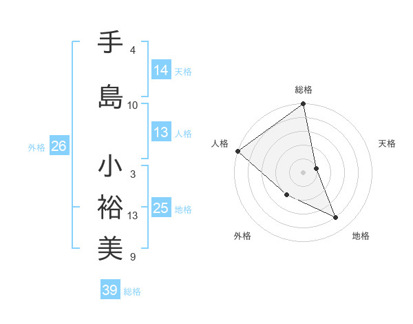 手島 小裕美さんの総格は39画の5点!