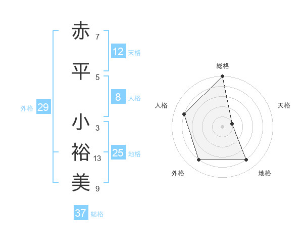 赤平 小裕美さんの総格は37画の5点!