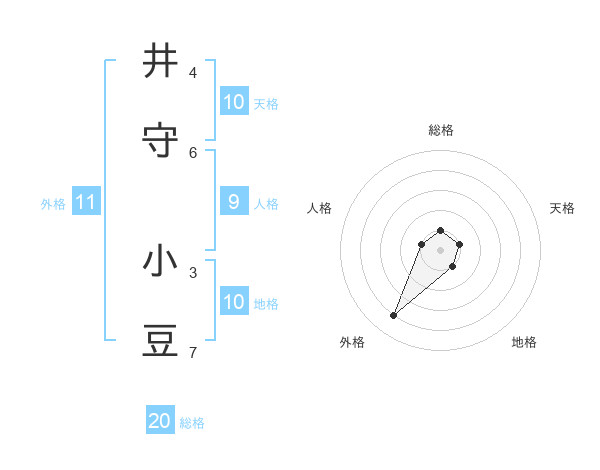 井守 小豆さんの総格は20画の1点!