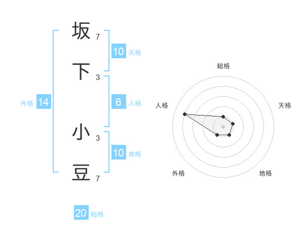 坂下 小豆さんの総格は20画の1点!