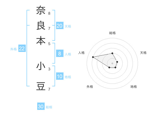奈良本 小豆さんを姓名の画数から五運を鑑定