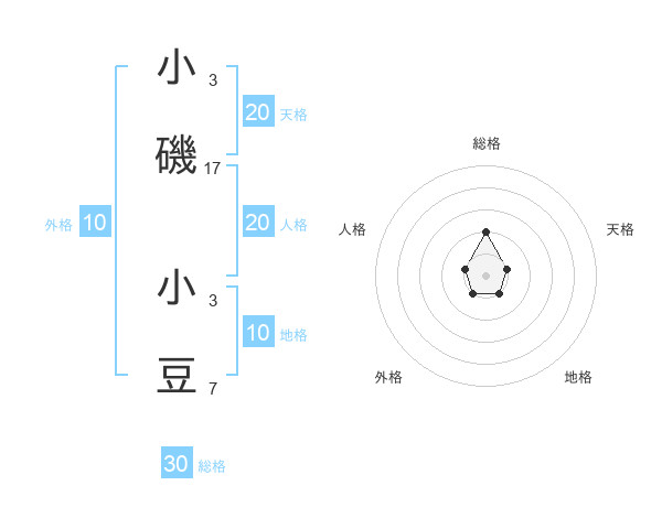 小磯 小豆さんの天格は20画の1点!
