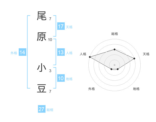 尾原 小豆さんを姓名の画数から五運を鑑定