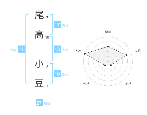 尾高 小豆さんを姓名の画数から五運を鑑定