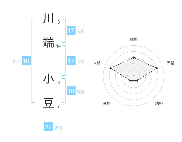 川端 小豆さんの天格は17画の4点!