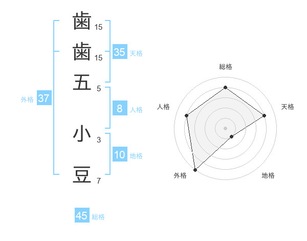 歯歯五 小豆さんの外格は37画の5点!