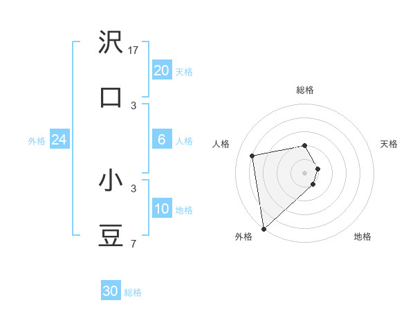 沢口 小豆さんを姓名の画数から五運を鑑定