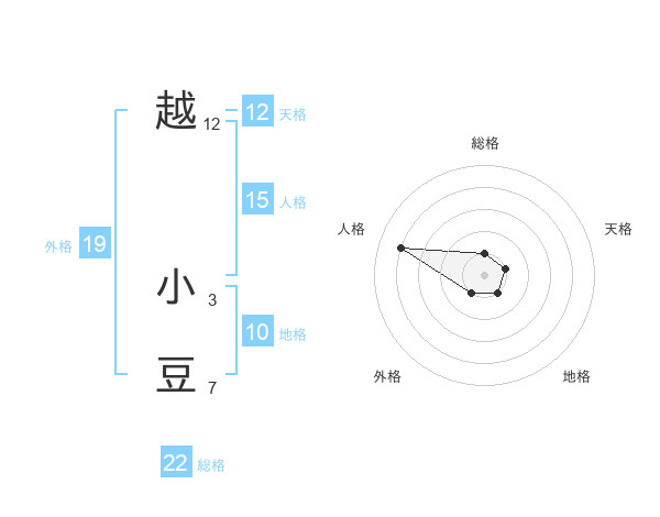 越 小豆さんの総格は22画の1点!