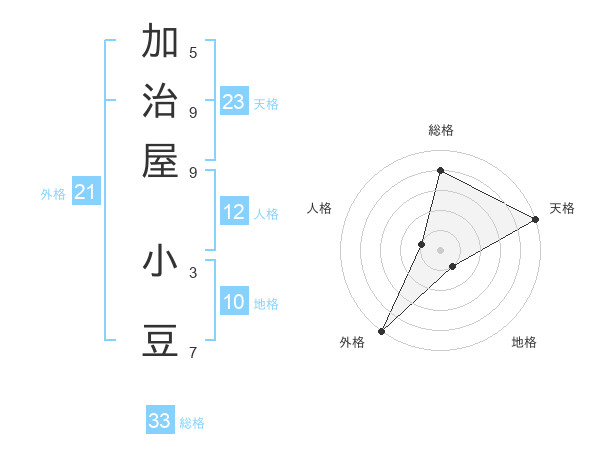加治屋 小豆さんを姓名の画数から五運を鑑定