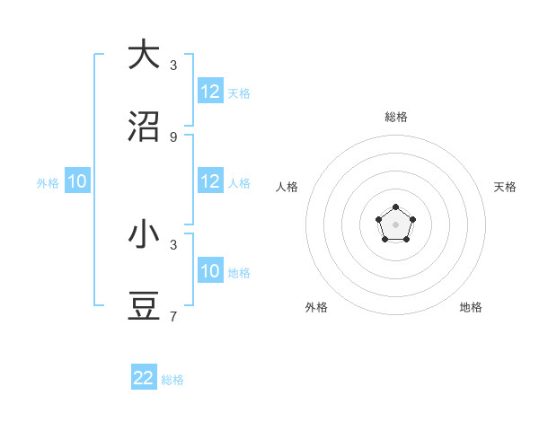大沼 小豆さんを姓名の画数から五運を鑑定