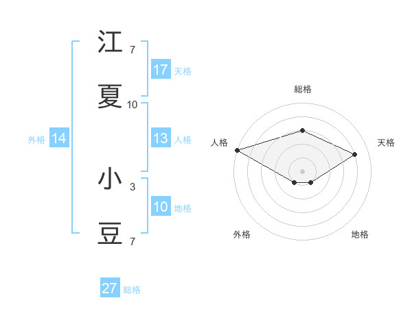江夏 小豆さんを姓名の画数から五運を鑑定