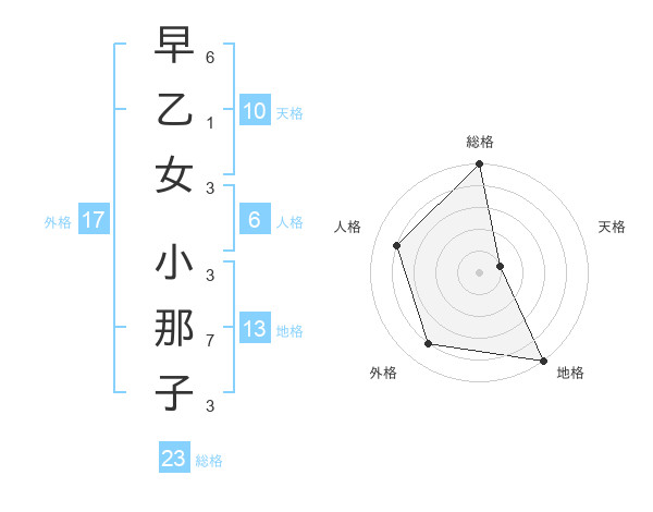 早乙女 小那子さんの総格は23画の5点!