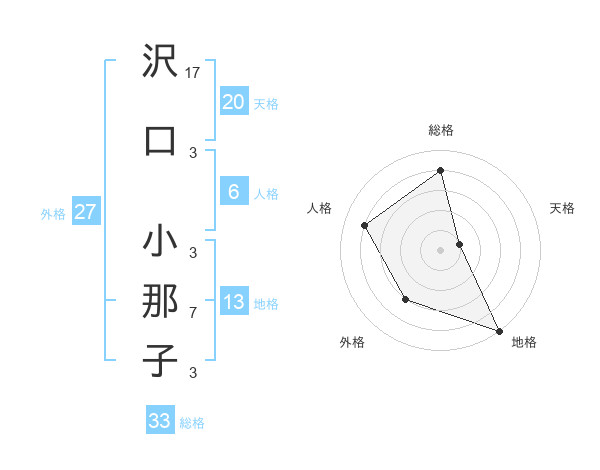 沢口 小那子さんの総格は33画の4点!