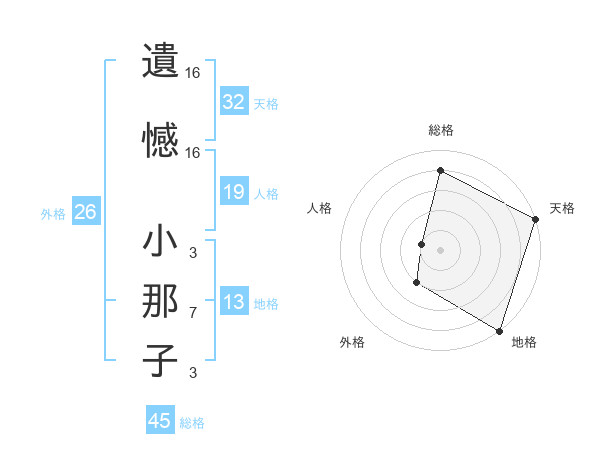 遺憾 小那子さんの地格は13画の5点!